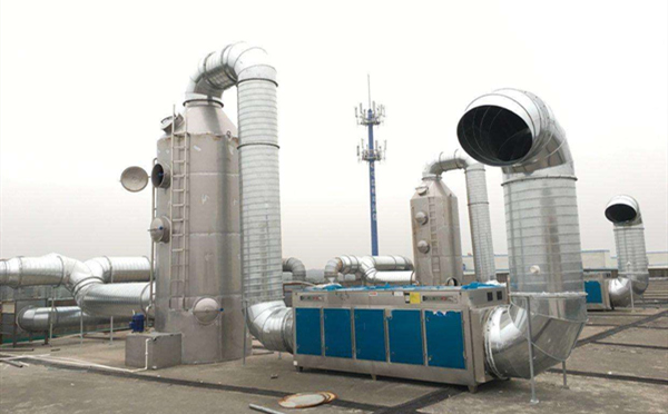 噴淋塔用來除掉灰塵和顆粒等雜質,UV關解則利用紫外線在催化劑的作用下,對有機廢氣進行分解,使其達標排放。
