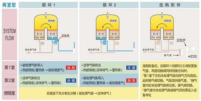 用RTO蓄熱式焚燒爐凈化有機廢氣,是屬于熱力燃燒法處理有機廢氣的范疇。就一般RTO焚燒爐而言,通常至少需要用兩臺蓄熱室來操作,兩室RTO蓄熱式焚燒爐是較常用的有機廢氣燃燒設(shè)備之一。