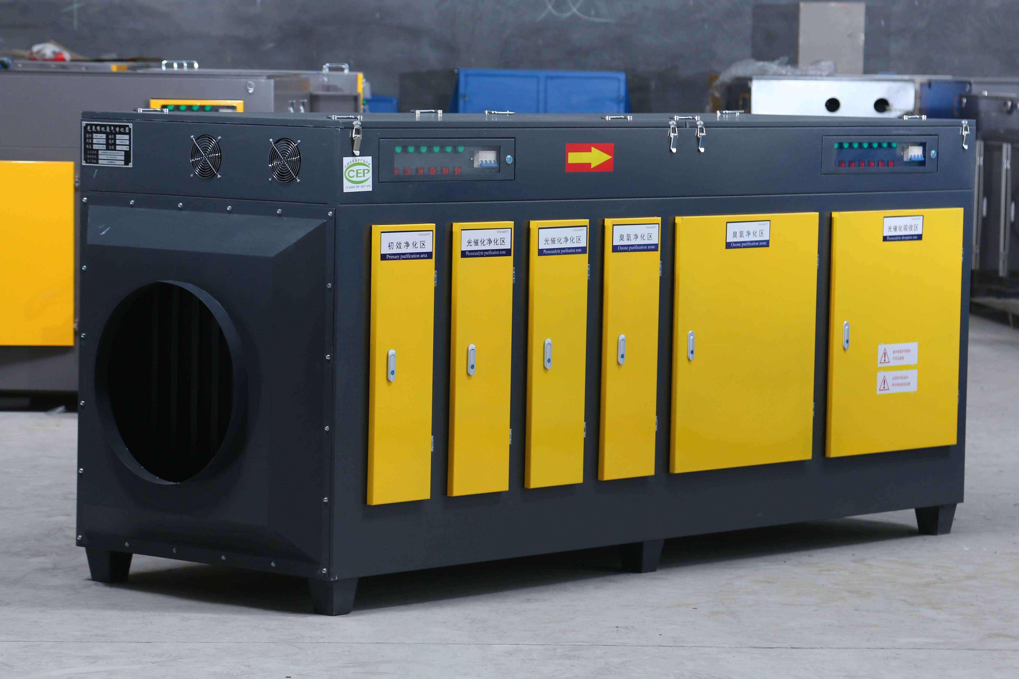 光氧催化設備采用-C波段光源將廢氣中的有毒有害的化學分子鏈裂解、斷鏈、氧化、分解,將大分子鏈分解成無毒無害的小分子,光與氣體完全沒有任何間隙,光速比氣體的速度高數(shù)倍,在光氧催化凈化器內(nèi)-C段光源能夠完全將有毒有害的有機廢氣完全分解,氣體中的大部分有害物質(zhì)被分解、氧化為二氧化碳、水和礦物質(zhì),無第二次污染;祛除異味效果高達99%以上。
